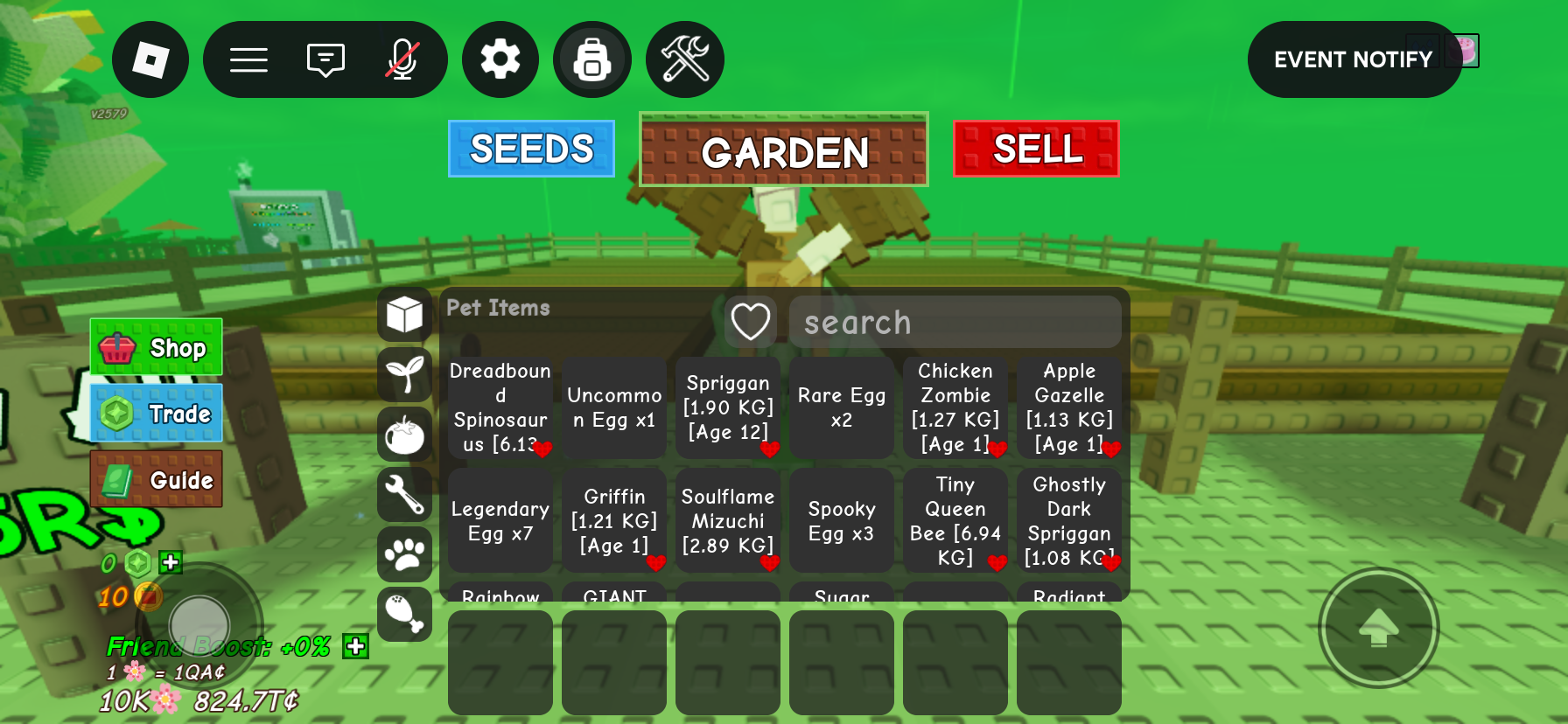 在 SHANNENG 上买卖 Grow A Garden 宠物来赚钱